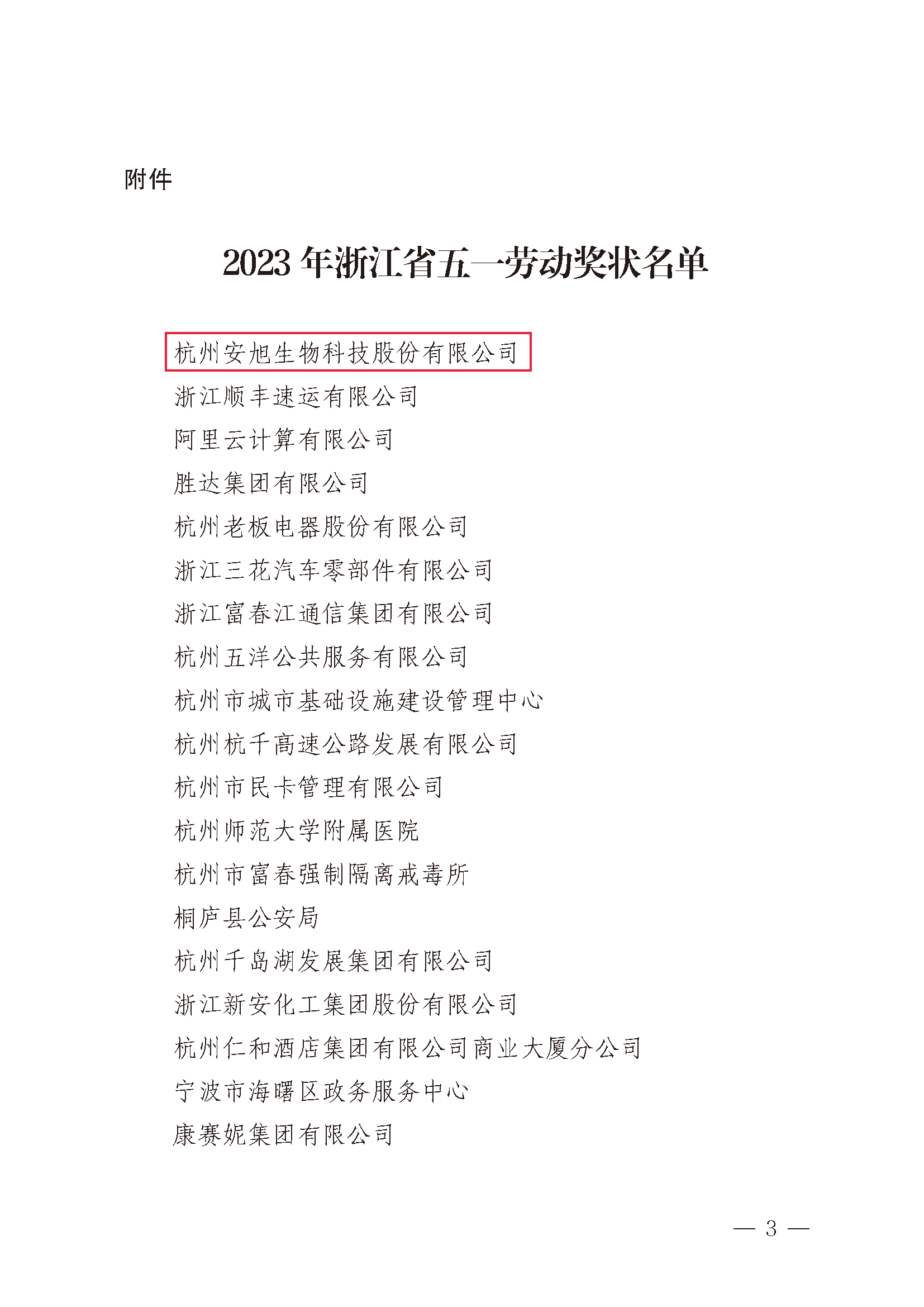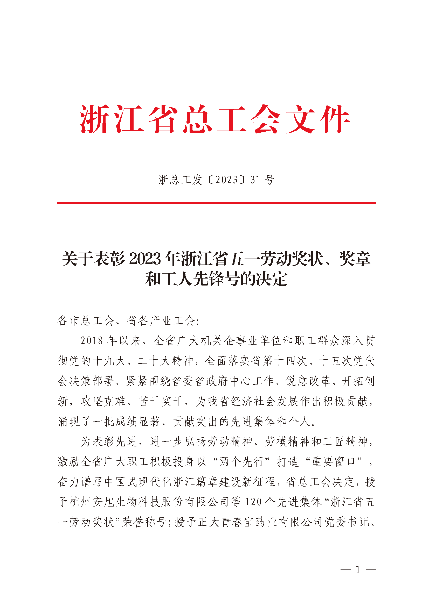 近日,浙江省總工會印發(fā)《關(guān)于表彰2023年浙江省五一勞動獎狀、獎?wù)潞凸と讼蠕h號的決定》。全省共評選授予120個集體“浙江省五一勞動獎狀”榮譽(yù)稱號,300名先進(jìn)個人“浙江省五一勞動獎?wù)隆睒s譽(yù)稱號。其中,安旭生物榮獲“浙江省五一勞動獎狀”榮譽(yù)稱號。